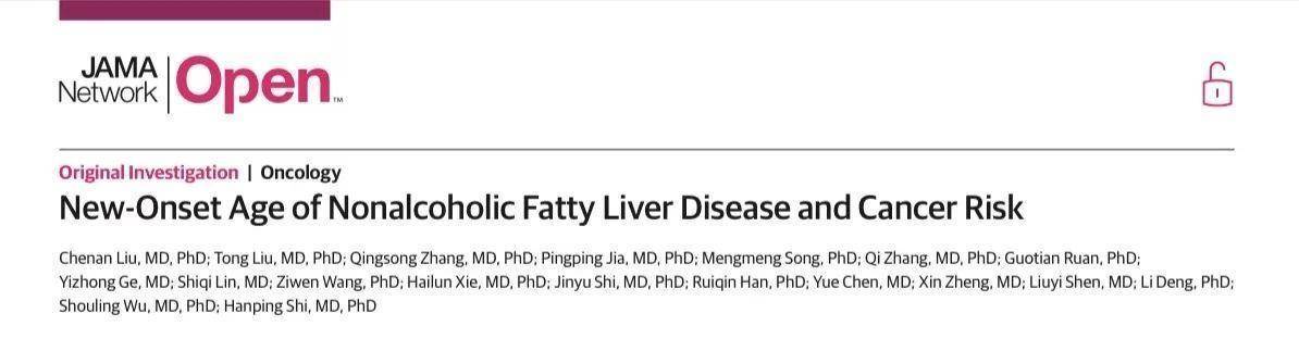 一项发表在《美国医学会杂志》子刊(JAMA Network Open)的研究发现,45岁前患上脂肪肝的人,未来患各种癌症的风险也会增加。