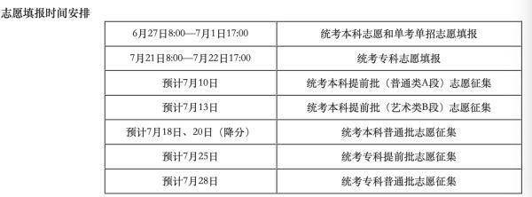 统考本科志愿和单考单招志愿填报之后,考生须按报名单位的要求进行志愿信息的确认。 7月1日17时至4日17时考生通过系统可查看本人的统考本科或者单考单招志愿填报信息。