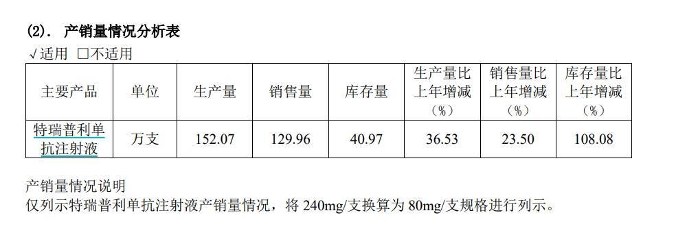 君实生物PD-1肿瘤药的产销量情况 来源:2023年财报