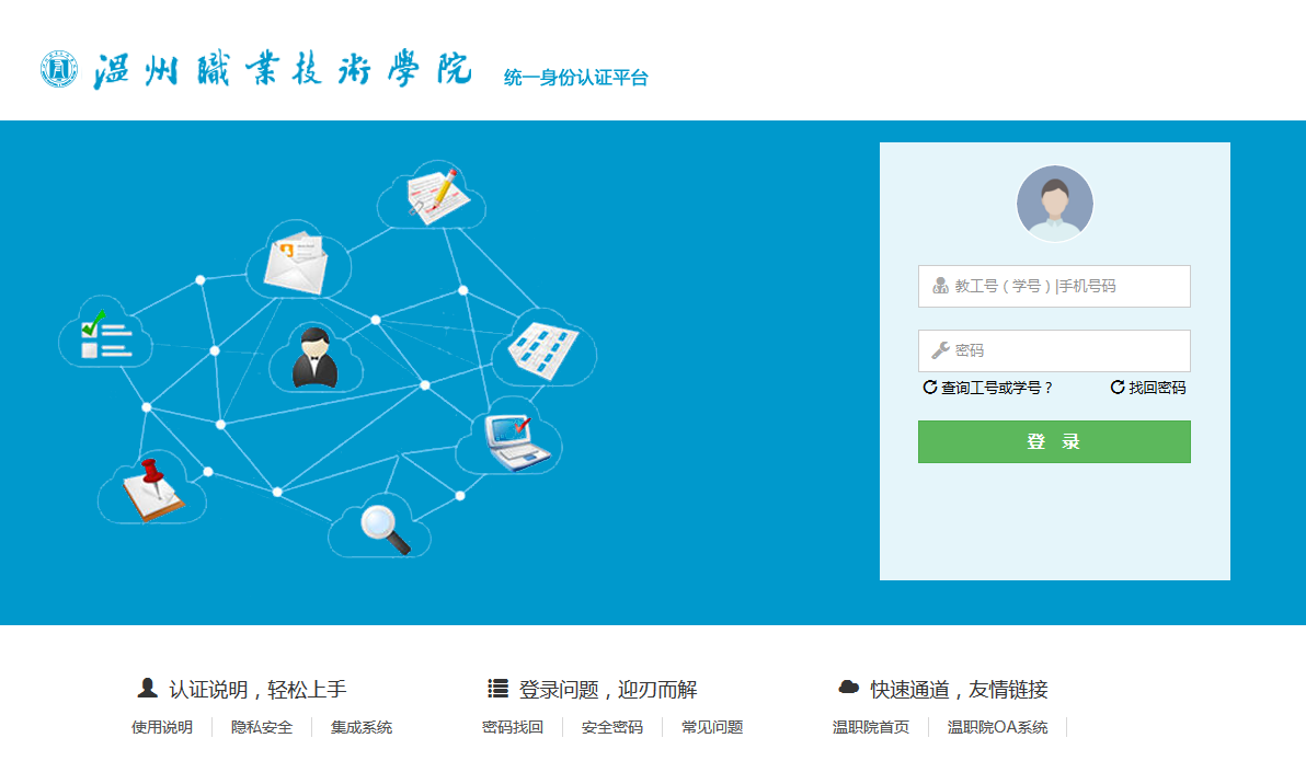 温州职业技术学院统一身份认证平台登录id.wzvtc.cn/cas/login