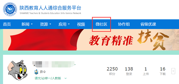 ①登录个人账号后,点击“微社区”即可进入个人微社区;